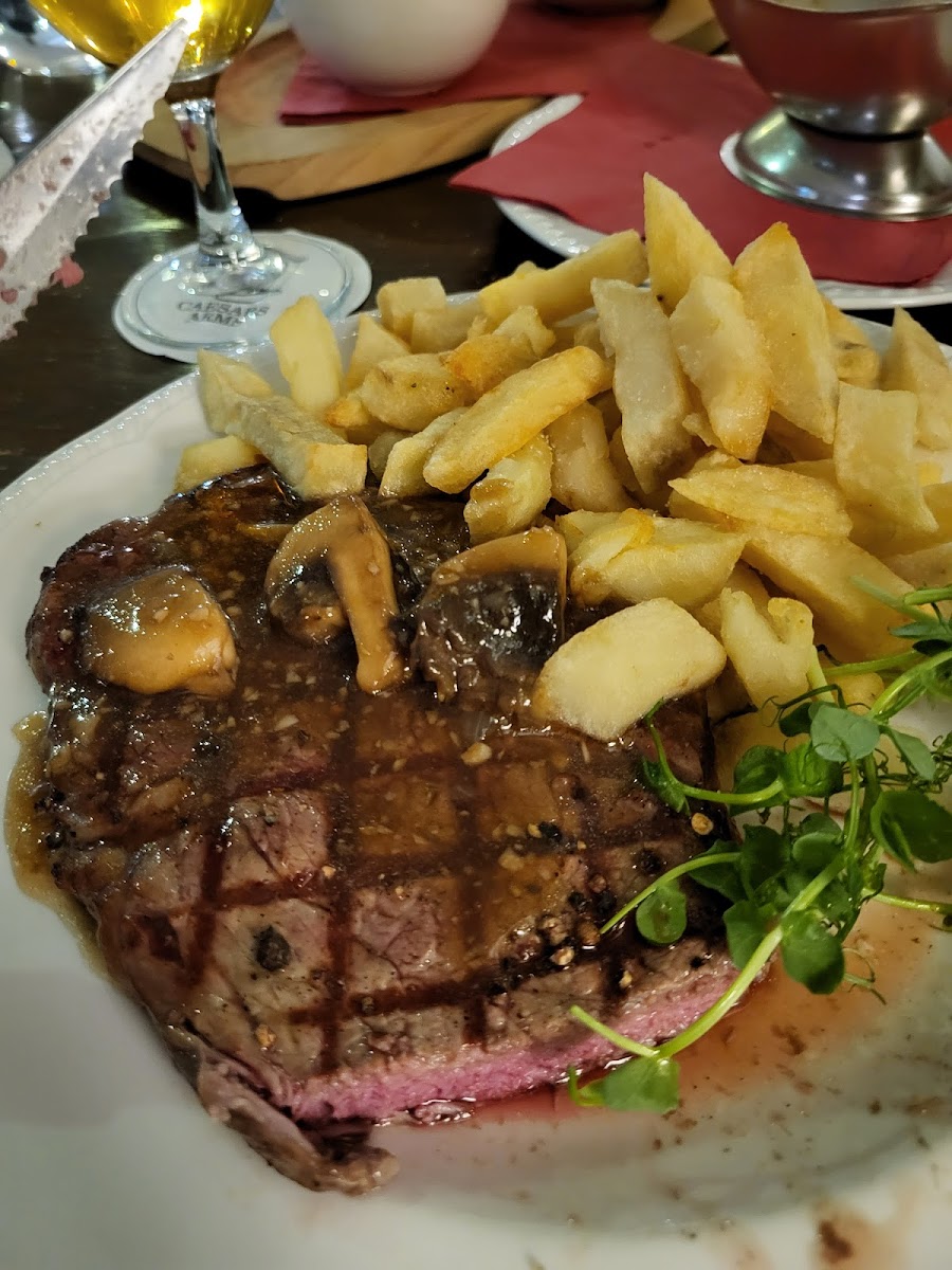 Caesars Arms has earned a solid reputation among locals for its delectable seafood offerings, including Sea Bass in Rock Salt, Hake, and Oysters Rockefeller. If you're in the mood for something hearty, the restaurant's signature Rib-Eye Steak and Cod and Chips are crowd favorites. The rich flavors of Salmon Pate, paired with a refreshing Prawn Cocktail, give you a taste of the ocean's finest produce. And for those with a sweet tooth, Brownie with Ice Cream or a slice of My Birthday Cake will make any meal feel like a celebration.